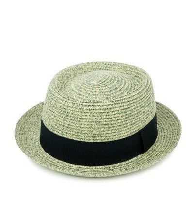 Olive tweed paper braid Porkpie hat. Black band. One size. Unisex.